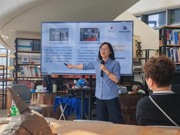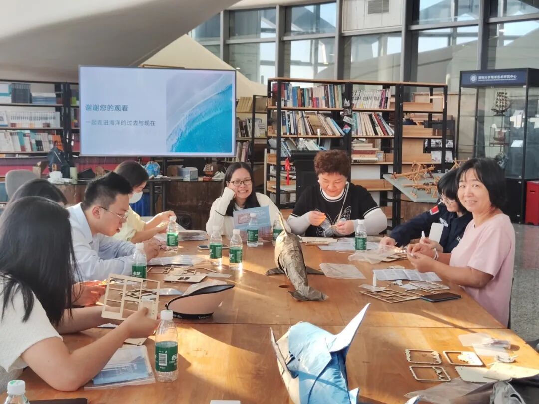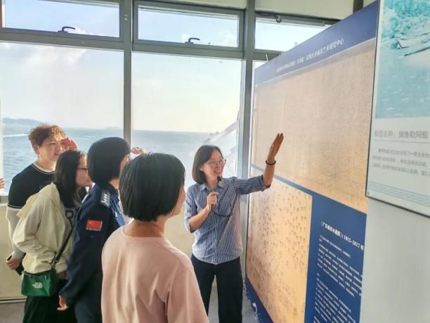 活动伊始,深圳大学海洋艺术研究中心展览教育部主任葛洋老师带领党员们认识深圳建设“全球海洋中心城市”的战略布局,特别指出深圳特区的“闯”劲与“创”劲,与古代航海人民的开拓基因一脉相承——从郑和下西洋的开放探索,到蛇口工业区“开山第一炮”的敢为人先,海洋始终是深圳发展的“动力源”。葛老师同时介绍了深圳大学海洋艺术研究中心自2014年成立以来的科研项目和社会化转化成果,以“文化艺术+海洋”的无限创想,进一步坚定了参与者对海洋文化的自信,为党建学习注入独特的海洋精神内涵。