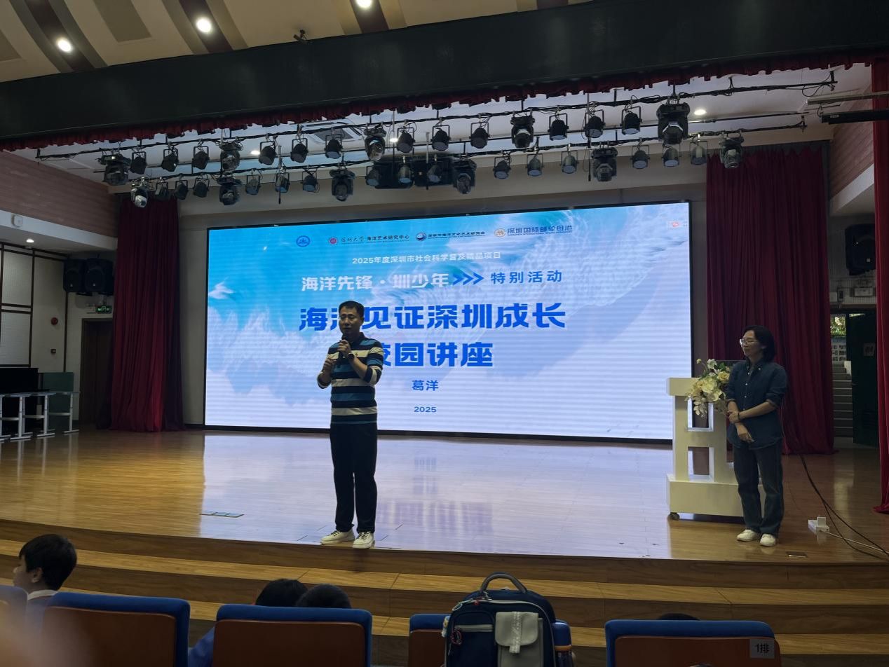 2025年10月22日,“海洋先锋·圳少年”特别活动之“海洋见证特区成长”知识进校园讲座在深圳市南山区第二外国语学校(集团)海德学校圆满举行。作为2025年度深圳市社会科学普及精品项目之一,本次活动由深圳市社会科学联合会指导、深圳大学海洋艺术研究中心联合深圳市海洋文化艺术研究会及深圳招商蛇口国际邮轮母港有限公司共同主办,并获得南山二外海德学校的大力支持。
