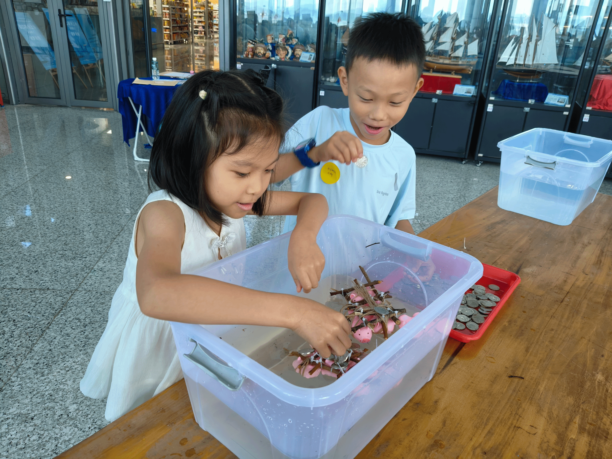 活动以小组为单位,设置阶梯式挑战任务,让学生在协作中成长,科学实验(浮具制作与浮力实践)、情景游戏(“大明航海家” 角色扮演桌游)、创意设计实践(搭建微型邮轮母港)等,每一项任务都配套积分机制,在良性竞争中激发主动性,在分工协作中学会沟通包容。