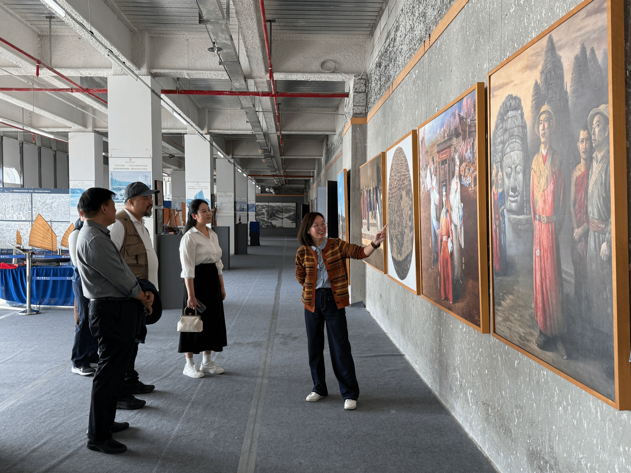 在深圳大学海洋艺术研究中心展览教育部主任、深圳市海洋文化艺术研究会秘书长葛洋的引导介绍下,澳门道家文化协会赖宏会长一行重点参观考察了“海上丝绸之路两千年”(国家艺术基金资助项目)美术作品展、《寻梦中国帆——中国古代船模作品巡展》等特色海洋艺术展览及第十二届《风帆时代》海洋艺术作品展。