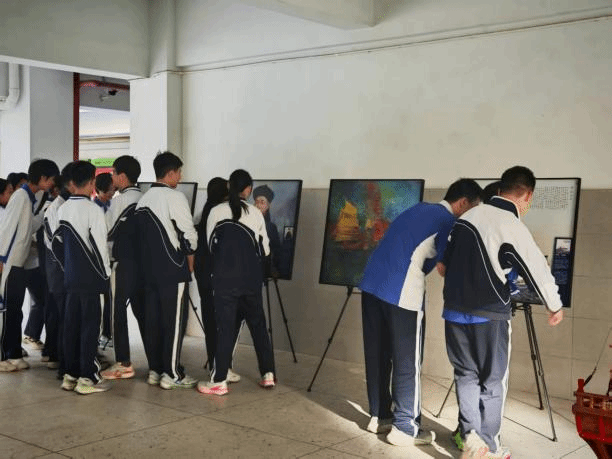 走廊里的【蔚蓝中国】海上丝绸之路两千年海洋历史文化展,已然成为侨中学子课间最热门的“打卡地”!这场展览以时间为轴,串联起中国古代海洋文明的璀璨篇章。从战国邹衍“大灜海”的海洋理论探索,到明朝郑和七下西洋28载的壮举,再到航海交流带来的文化交融,每一幅绘画都让同学们仿佛穿越时空,亲身感受中国古代海洋文明的璀璨与航海人的勇气担当。