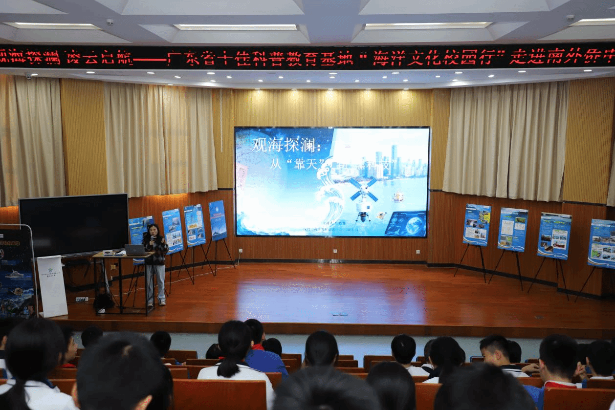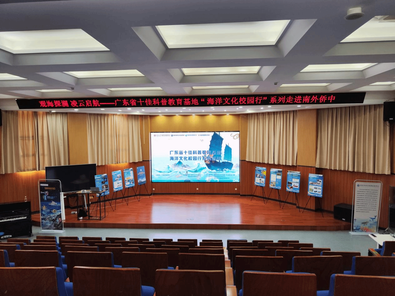 2025年11月26日,广东省十佳科普教育基地“海洋文化校园行”走进南外侨中系列活动圆满举行。活动把“流动的科普基地”搬进了校园,一场穿越千年的“海上丝绸之路两千年”历史文化展,搭配“‘观海探澜’古今pk,从靠天到黑科技”主题讲座,让同学们沉浸式解锁海洋的“前世今生”,在历史与科技的碰撞中,点燃对蔚蓝世界的探索热情!