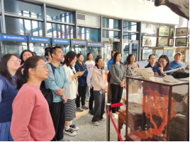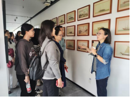 随后,葛洋老师带领志愿者们深入探访国内首个大型海洋文化科普教育基地,走进位于邮轮母港H4突堤展厅的海洋艺术科学馆。从海洋历史人文的厚重底蕴,到航海智慧的巧夺天工,再到海洋艺术的灵动创意,志愿者们沉浸式打卡“海上丝绸之路两千年”“中国古代船模作品展”等特色展区,在直观感受海洋文化多元魅力的同时,也系统了解了基地的展陈体系与核心内容,为后续深度参与展馆讲解、科普授课、活动共创等志愿服务积累扎实的海洋文化知识。