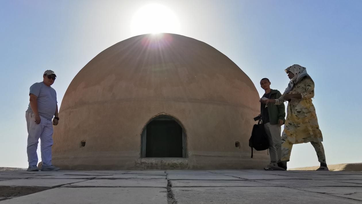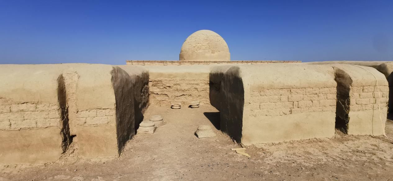 法雅孜-特佩在历史烟尘中被湮没了千年。这里是边境,属于军事重地,一直到20世纪末才开始发掘与保护。贵霜帝国在这里风光了300年,而今天除了一些佛寺佛塔尚有遗迹可寻,其它都灰飞烟灭。这些遗迹与今天隔阿拉伯文化强势的千年时空,现在我们还能见到这些土墙土塔也算是神迹。导游说那座佛塔原本没有这个圆顶,后来为了保护佛塔就给它加了一个保护罩,真正的古塔在里面。