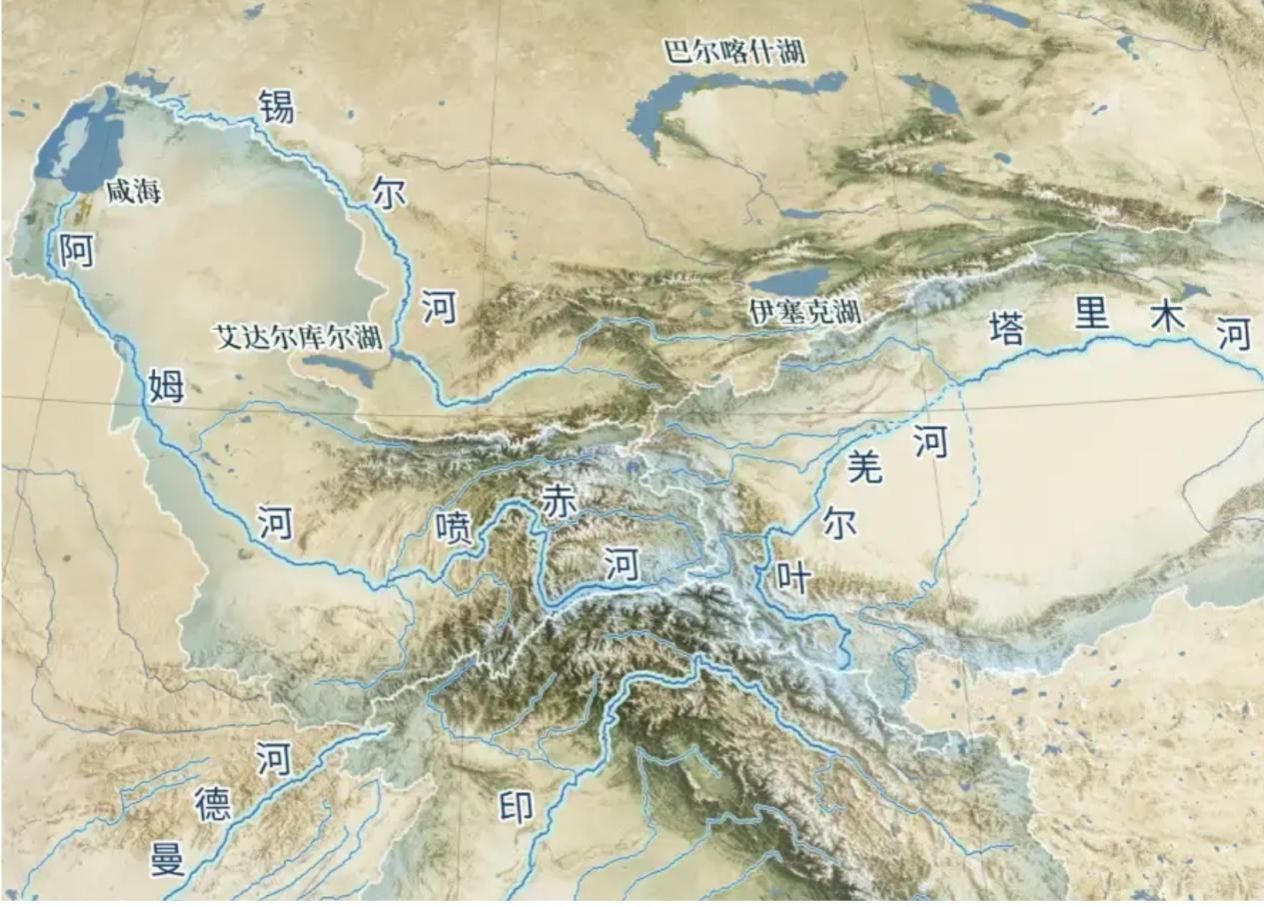 图一:南边的阿姆河,北边的锡尔河,中间是长长的绿洲,人称中亚的“两河流域”,