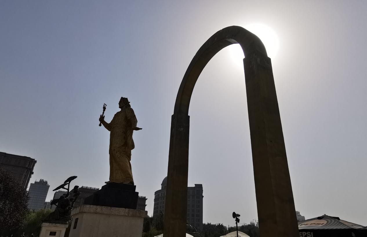 正是中亚不断“城头变幻大王旗”的惨烈历史,让今天这五个民族成分复杂国家的“国家叙事”都有认祖归宗的困惑。波斯人,突厥人、蒙古人,甚或中国人,总要从中选出一个民族英雄或开国祖先。乌兹别克斯坦选了突厥化的有着蒙古血统的帖木儿为民族英雄;塔吉克斯坦选择了波斯萨曼王朝的早期统治者索莫尼为“塔吉克民族之父”(图三);哈萨克斯坦选择蒙古金帐汗国的术赤作为开国祖先;吉尔吉斯斯坦和土库曼斯坦都没有明确的开国祖先,两国都将1991年苏联解体后本国的首任总统作为“国父”,并雕造金像立于广场之中。