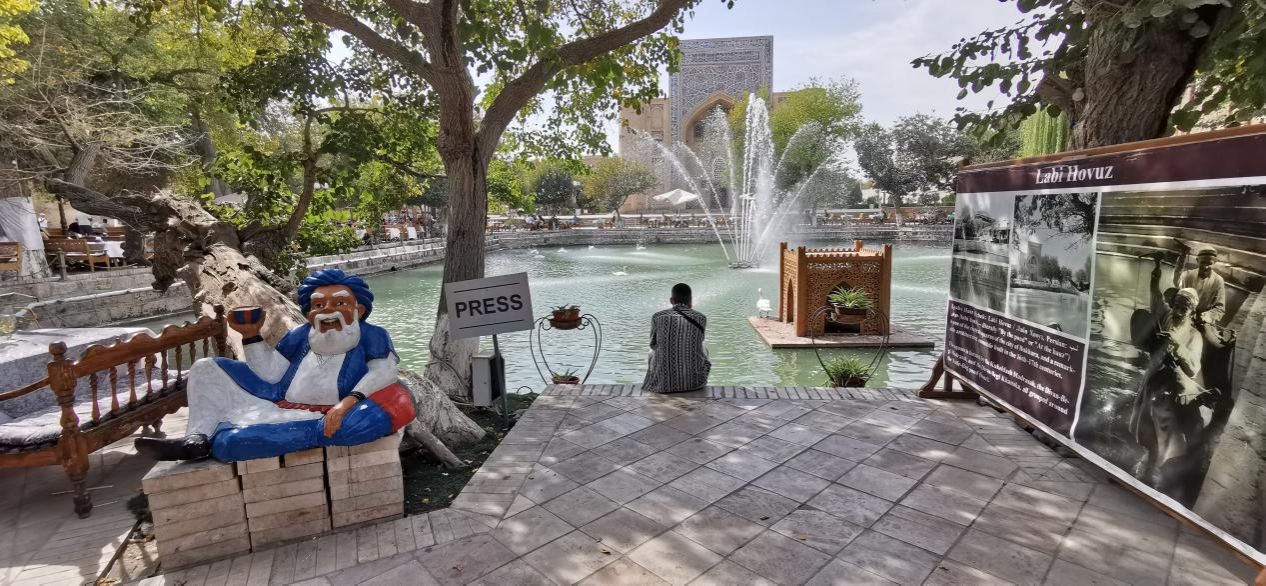 布哈拉有2000多年的历史,大约在公元前1世纪成为东伊朗语族的粟特人与塞种人(又译斯基泰人、西徐亚人)的聚集地。“布哈拉”之名源自梵语“Vihāra”,意为“佛教寺院”或“修行之所”。但建城后的两千年里,这里一直是波斯与突厥文化的重镇,现在连佛寺遗迹都找不到了。在布哈拉古城的水塘广场(也是巴扎集市),只要你了解这个城市的过往,就能听到波斯味的歌唱——