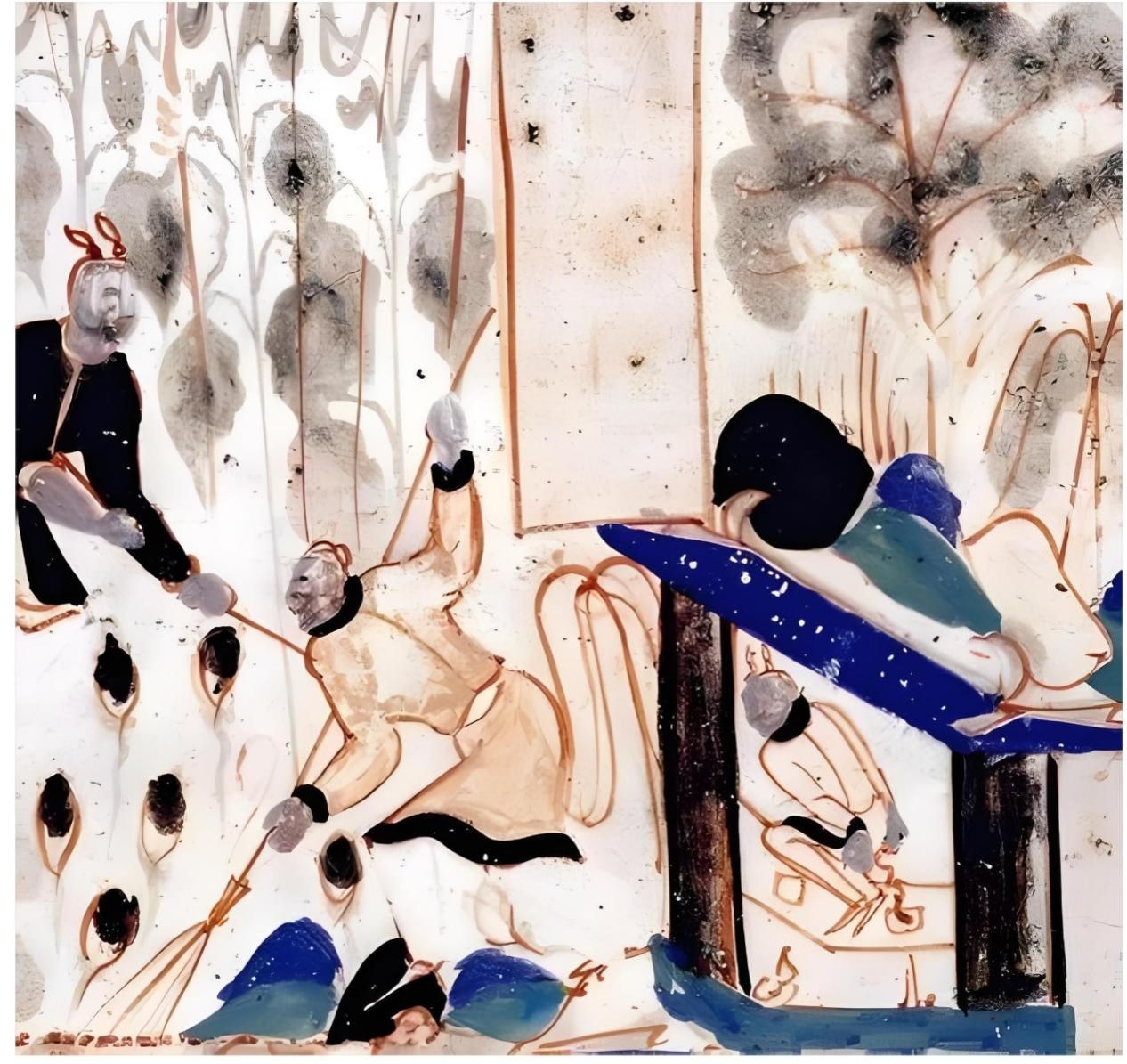图一:莫高窟290窟的北周悉达太子降生经变画中“蹲厕图”,