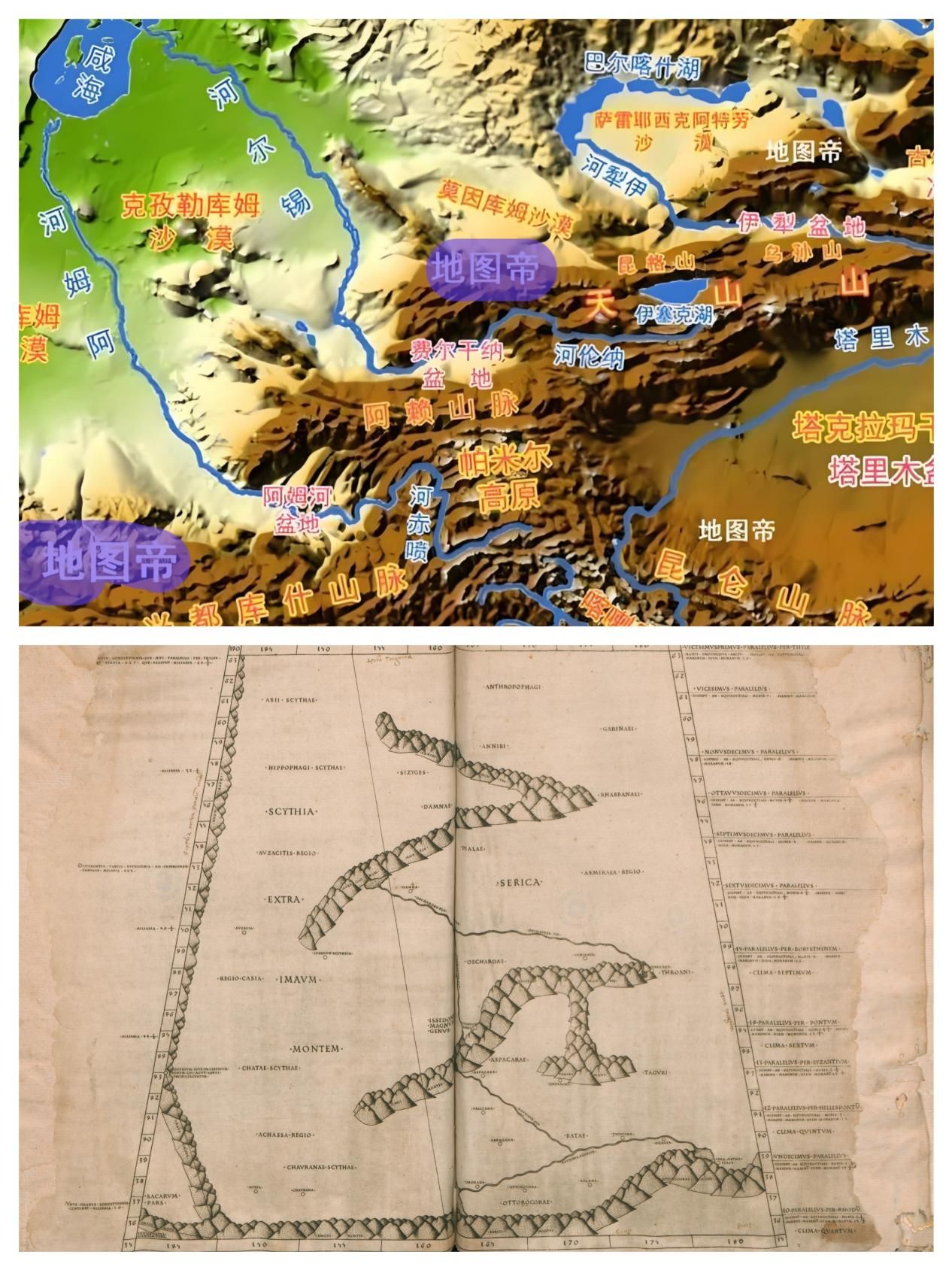 图三:从现代地图与古代地图看,兴都库什山脉都是丝绸之路上的必经之路。