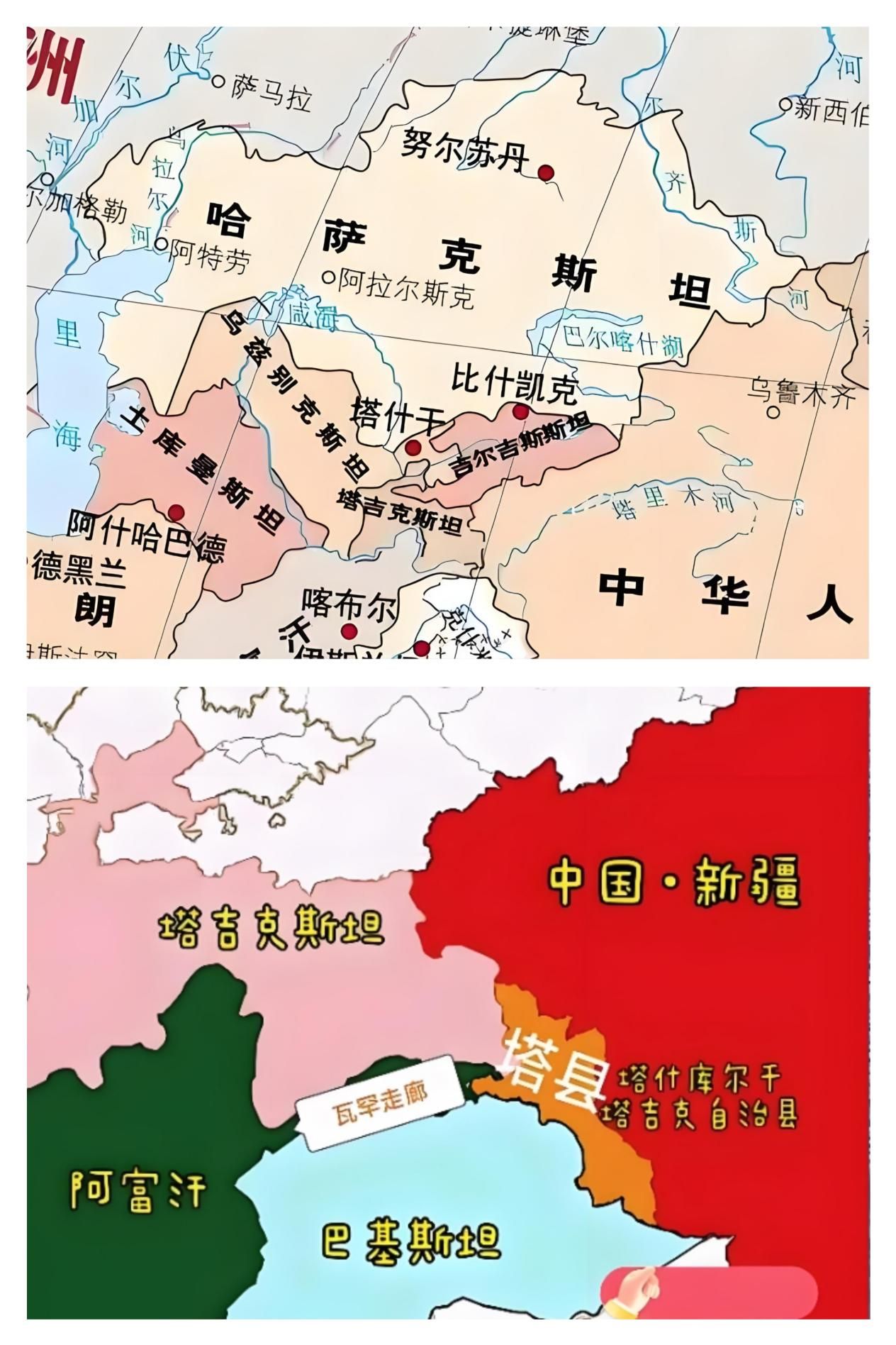 图一:从现代地图看,乌兹别克斯坦的塔什干地区与中国新疆的塔什库尔干地区并不相邻
