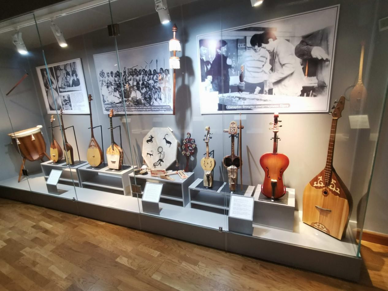 我觉得这个城里唯一可看的是那个装在一个小巧的古色古香的木质建筑里的民族乐器博物馆。门票,本国人160坚戈,外国人1500坚戈(约人民币20元)。我自费进去看了一下:小屋子里,有9个展厅,收藏有1300件叫不出名字的中亚和哈萨克斯坦的民族乐器。有懂一点乐器的人说,其中有噪音乐器、弦乐器、管乐器和簧片乐器。能叫上名字的有热尔布阿兹乐器、阿迪尔那乐器、舍尔特乐器、科布孜乐器、西布孜格乐器,以及广泛使用的乐器——冬不拉。这之中,我只知道冬不拉,但我还是觉得这个民族乐器的迷宫值得一看(图四)。