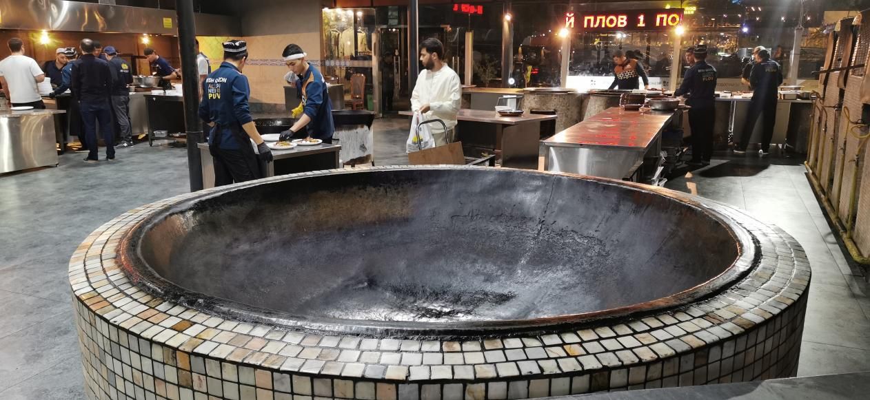 图六:乌兹别克塔什干的全球最大的“亚洲抓饭中心”,最大的炒锅直径4米