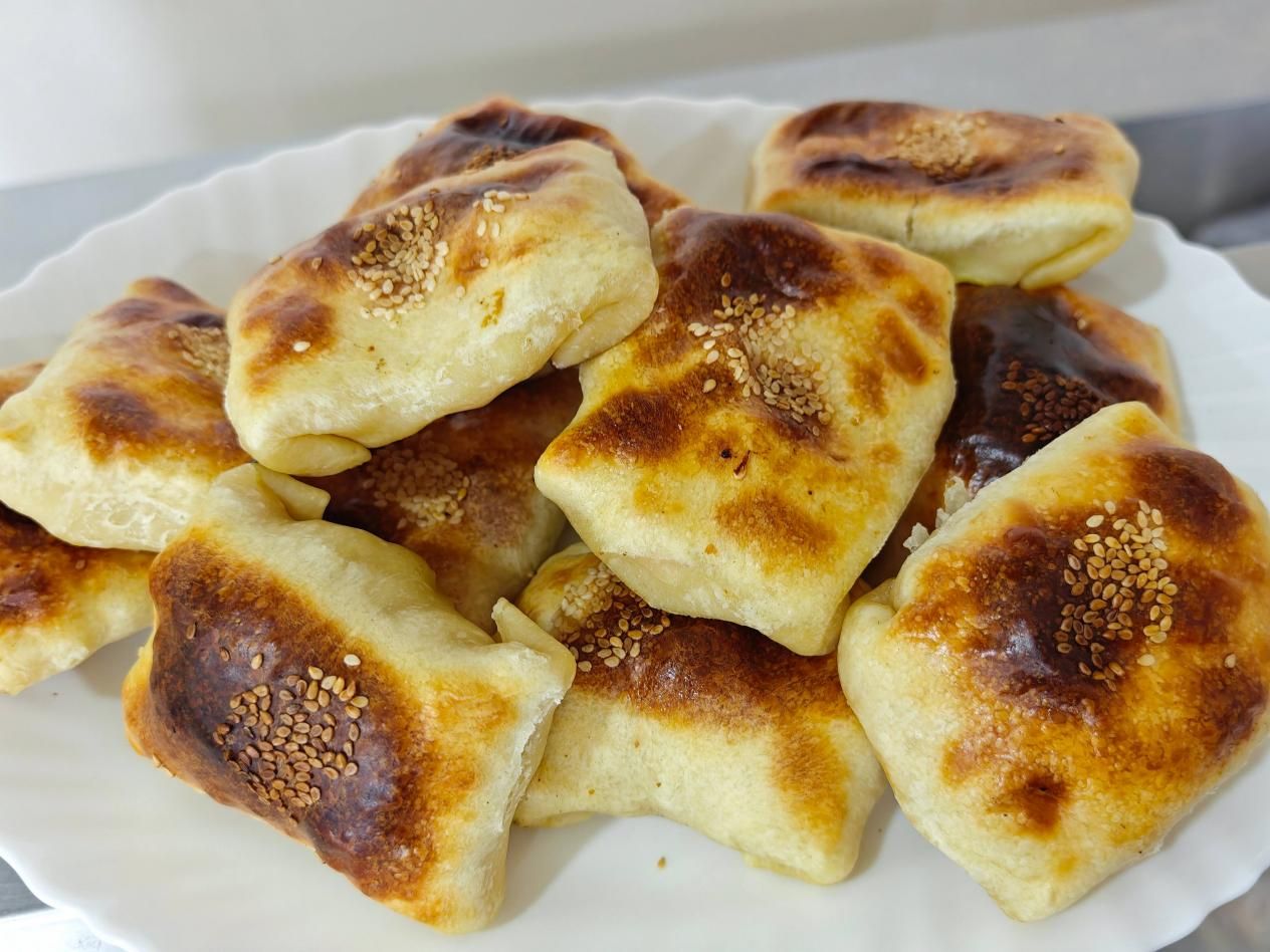 图五:乌兹别克希瓦的烤包子,有的是三角形,有的是四方形,像烤的馅饼或肉馅酥饼,就是不像包子
